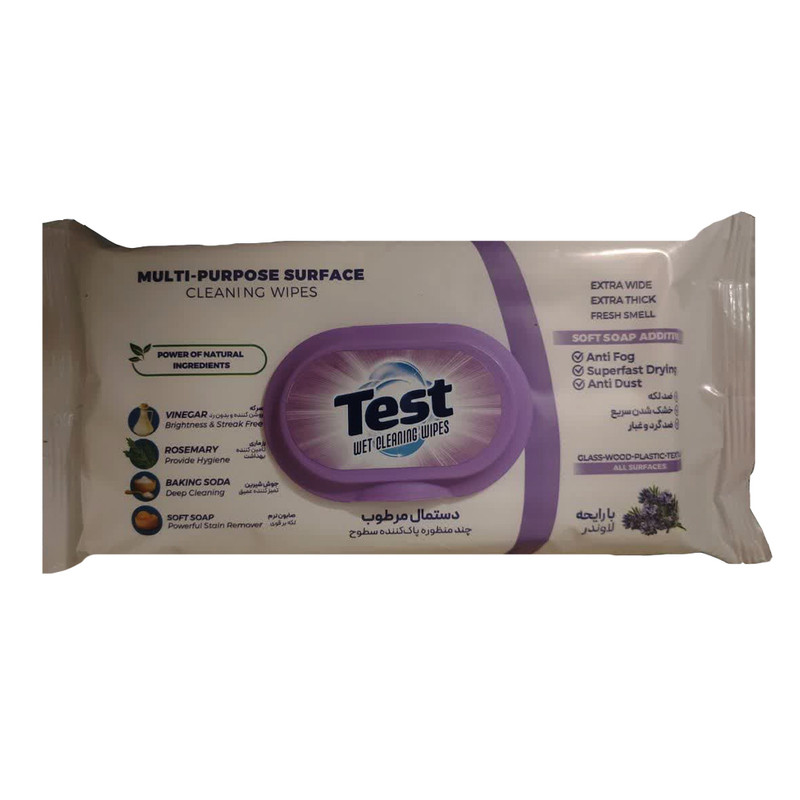دستمال مرطوب چندمنظوره تستtest پاک کننده سطوح با رایحه لاوندر 50 عددی۱۸۰٬۰۰۰ تومان