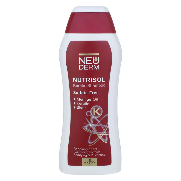 شامپو سر کراتینه فاقد سولفات نوتریسل نئودرم یک فرمول غنی از مواد مغذی، بدون سایش و مرطوب کننده است که موها و پوست سر را به آرامی تمیز میکند. این شامپو حاوی کراتین سرشار از مواد مغذی و آبرسان همچون بیوتین، روغن مورینگا و پروبیوتیک ها است که تغذیه و محافظت شدید از مو و پوست سر را فراهم میکند. در ادامه با فواید هر کدام آشنا میشویم: کراتین پروتئینی است که به تقویت مو برای جلوگیری از شکستگی، آسیب گرما و وز شدن کمک میکند. این ماده علاوه بر ترمیم کنندگی موهایی که با گرما و رنگ خشک شدهاند، آنها را در برابر آسیبهای بیشتر حفظ میکند. بیوتین برای حفظ بافت و قدرت ریشه موها ضروری است. این ماده موجود در شامپو کراتین نئودرم علاوه بر کمک به رشد مجدد مو، موجب افزایش ضخامت، درخشندگی و کیفیت موها میشود. روغن مورینگا در شامپو کراتینه فاقد سولفات نئودرم سرشار از ماده معدنی روی است که به تولید کراتین و در نهایت تقویت مو کمک میکند. این روغن ارزشمند علاوه بر خاصیت ضد التهابی، دارای خواص محافظتی و مرطوب کنندگی قوی است. پروبیوتیکها همانند واکسن، سیستم ایمنى سلولى را فعال کرده و ضمن تولید مواد ضد التهابى، با حفظ اسیدیته پوست و مو، به بهبود وضعیت آنها کمک شایانى مىنمایند.