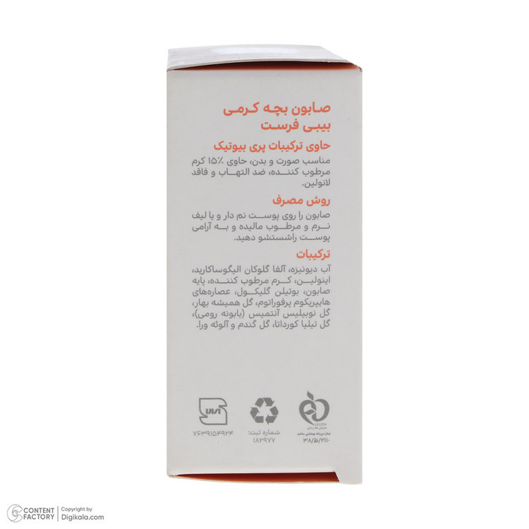 صابون بچه کرمی حاوی %15 کرم مرطوبکننده و عصارههای گیاهی، نرمکننده و التیامبخش پوست حساس نوزاد و کودک میباشد.حاوی ترکیبات پریبیوتیک، موثرترین عامل تقویت کننده وسد دفاعی پوست میباشد.