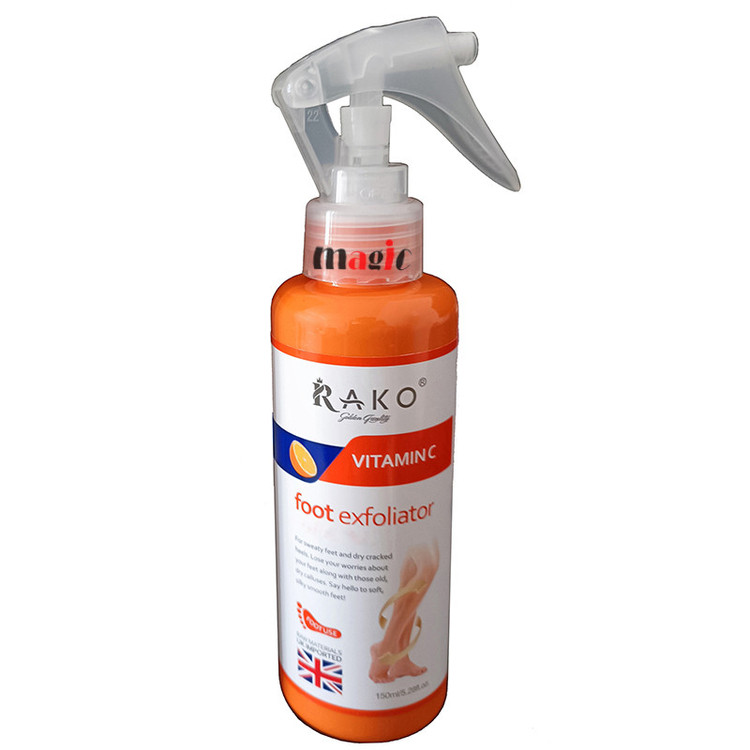 اسکراب لایه بردار پا راکو مجیک مدل ویتامین سی حجم 150 میلی لیتر به شکل اسپری می باشد حاوی ذرات پرخاصیت پرتغال است است که پوست شما را از هرگونه مواد اضافه پاکسازی میکند. این اسپری لایه بردار برای انواع پوست مناسب است حتی برای افرادی که پوستی چرب، خشک و یا حساس دارند، اسکراب لایه بردار بهترین و مناسب ترین گزینه برای پا و پاشنه پا میباشد. اسکراب پا راکو مجیک به سرعت از بین برنده سلولهای مرده پاشنه و کف پا است و کمک زیادی به تنفس پوست پا و بازسازی سلولهای کف پا و کم کردن ترکهای پاشنه پا میشود و بوی بد پا را نیز از بین میبرد.