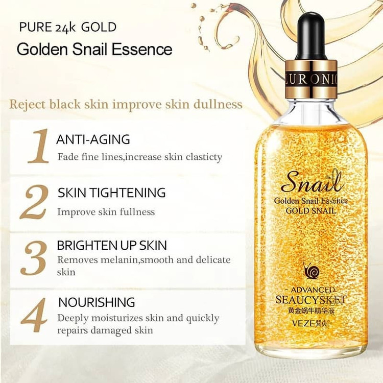 سرم وره مدل Golden Snail حاوی عصاره ترشحات حلزون است که پوست را آبرسانی، جوان و شاداب می کند. این سرم خشکی پوست را از بین می برد و به بازگشت رطوبت پوست کمک می کند.