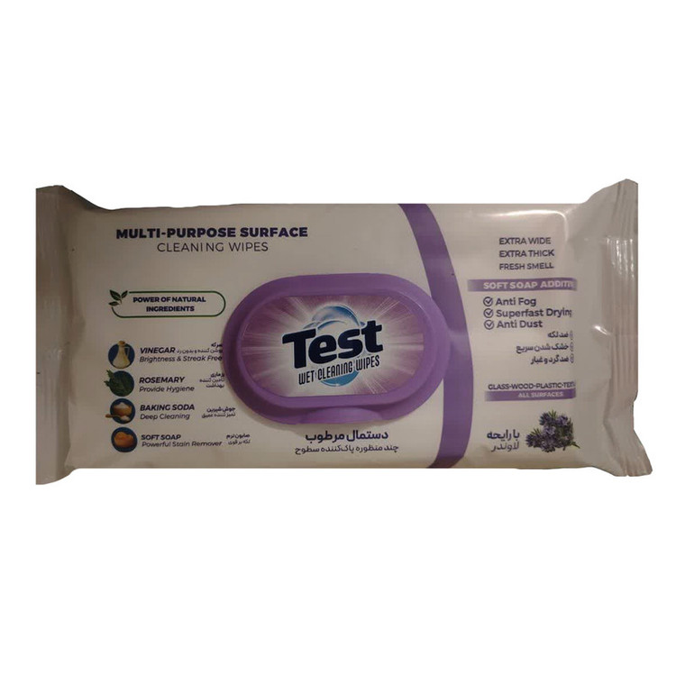 دستمال مرطوب چندمنظوره تستtest پاک کننده سطوح با رایحه لاوندر 50 عددی