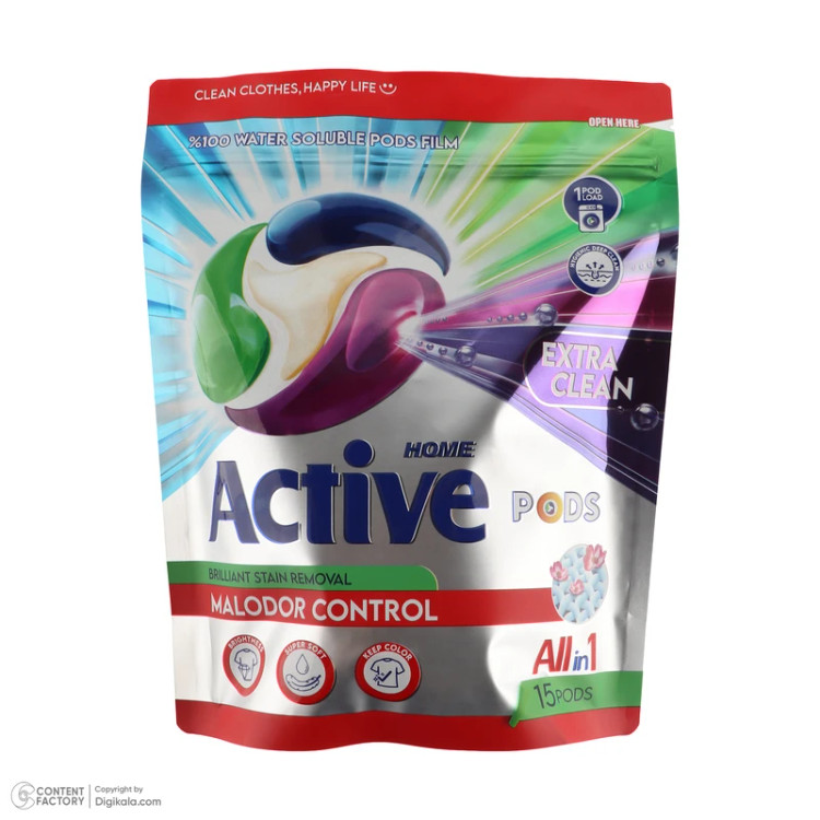 پاد ماشین لباسشویی (قرص ماشین لباسشویی ) اکتیو مدل All in 1 - بسته 15 عددی