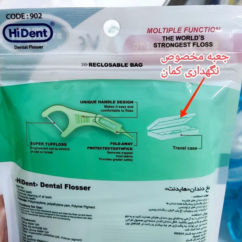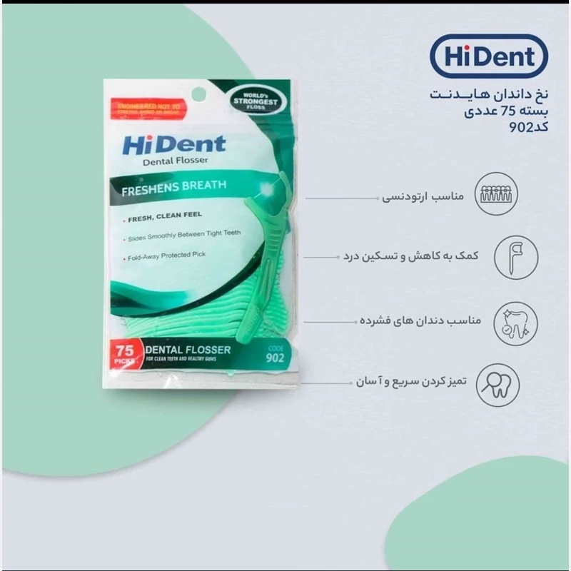 نخ دندان کمانی Hi- dent همراه با خلال دندان بسته 75 عددی ویژگیها: - استفاده راحت تر از نخ دندان معمولی - مناسب برای همه به ویژه دندان های ارتودنسی شده - مناسب برای سفر (حاوی یک جعبه کوچک برای نگهداری شش کمان) - استفاده روزمره