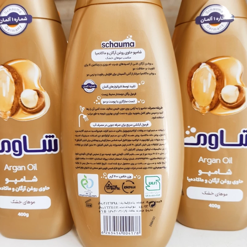 شامپو آرگان و ماکادمیا شاوما، برای موهای خشک 400 میلی لیتر تایید توسط لابراتوارهای آلمان ویژگیهای محصول : 🌹مناسب موهای خشک 🌹روغن آرگان غنی از اسیدهای چرب ضروری و ویتامین E برای تقویت و محافظت مو 🌹روغن ماکادمیا سرشار از انتی اکسیدان برای رطوبت و نرمی مو 🌹تقویت کننده بدون پارابن، بدون سیلیکون
