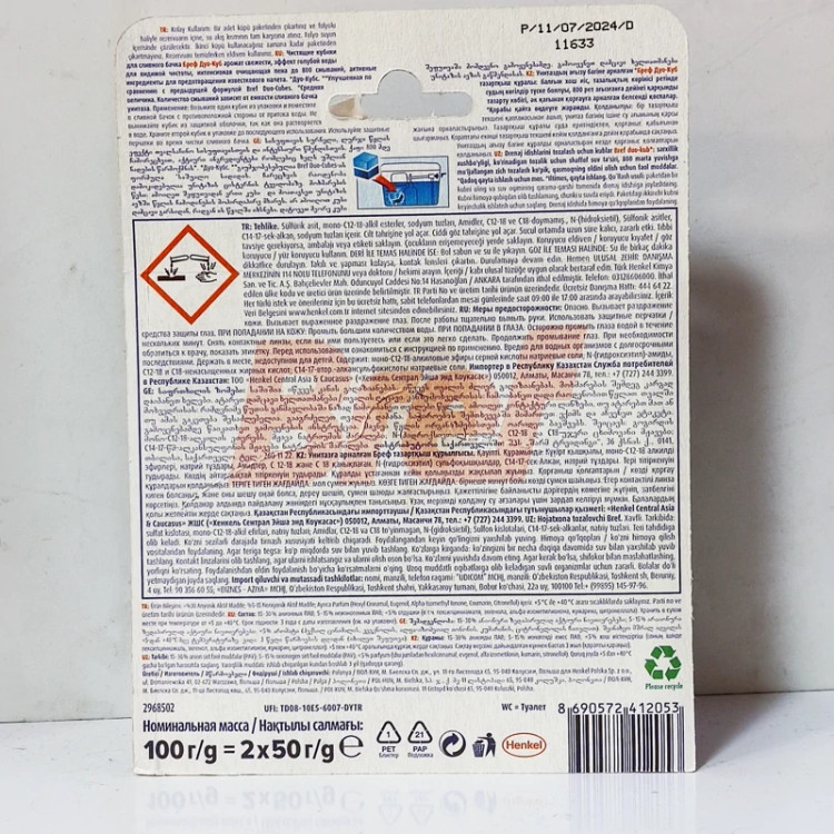 قرص خوشبو کننده و ضدعفونی کننده فلاش تانک ویژگی ها: - آبی کننده رنگ آب - تمیزکننده ـ ضدعفونی کننده - مانع ایجاد رسوب ـ ماندگاری بالا ـ ایجاد هوای تازه و خوشبو در محیط سرویس بهداشتی ـ قرص مکعبی توضیحات : تانک برف 2 عددی شامل دو عدد قرص به شکل مکعب بوده و ساخت کشور ترکیه است. این محصول شگفت انگیز با فرمولاسیون ویژه و منحصربفرد خود بعد از هر بار استفاده از سرویس بهداشتی، از ایجاد رسوب و بوی نامطبوع در آن جلوگیری می کند و مانع پخش بو در محیط سرویس بهداشتی می شود و آن را خوشبو می کند. خوشبو کننده توالت فرنگی Bref با خاصیت بی نظیری که دارد رنگ آب فلاش تنک را آبی می کند و در هربار استفاده فضای محیط سرویس بهداشتی را معطر و با رایحه خوش، خنک و ماندگار خواهد کرد. پس از هر بار سیفون کشیدن، پاکسازی و خوشبو کنندگی بی نظیری را تجربه خواهید کرد.