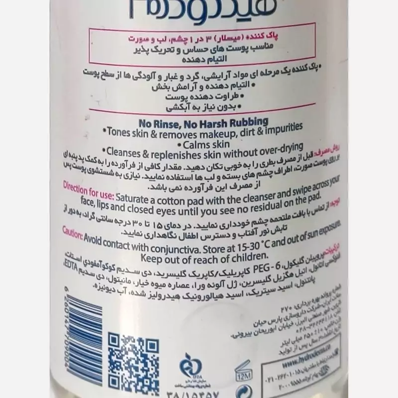 هیدرودرم میسلار واتر 3 در 1 چشم و لب و صورت Soothing پوست حساس و تحریک پذیر