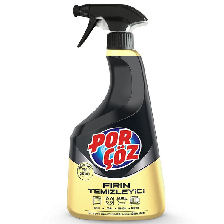 اسپری پاک کننده گاز و فر پورچوز Porçöz با حجم 750 میلی محصولی قدرتمند از شرکت ترکیه ای پورچوز por çöz می باشد که به لطف فرمولاسیون قدرتمند خود سخت ترین لکه های روغن خشک و سوخته را بدون زحمت از بین میبرد این اسپری پاک کننده سطوحی داخلی فر مانند سینی، گریل، کباب پز، اجاق گاز، تابه و قابلمه را تمیز میکند