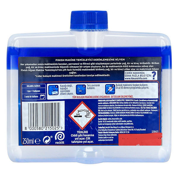 محصول فوق از دو فاز تشکیل شده است؛ لایه آبی رنگ آن، چربیها و ذرات مواد غذایی باقیمانده در دستگاه را تمیز کرده و لایه شفاف آن رسوبات آهکی ناشی از آب سخت را از بین میبرد. همچنین با تمیز کردن کامل دستگاه، از آسیب به آن جلوگیری کرده و طول عمرش را به میزان قابل توجهی افزایش میدهد. از طرفی استفاده از این محصول به دستگاه کمک میکند که در شستشوی ظروف بسیار خوب عمل کرده و ظروفی عاری از هرگونه آلودگی به شما تحویل دهد. با خرید جرم گیر ماشین ظرفشویی فینیش، دستگاهی تمیز و ظروفی براق و درخشانتر داشته باشید.