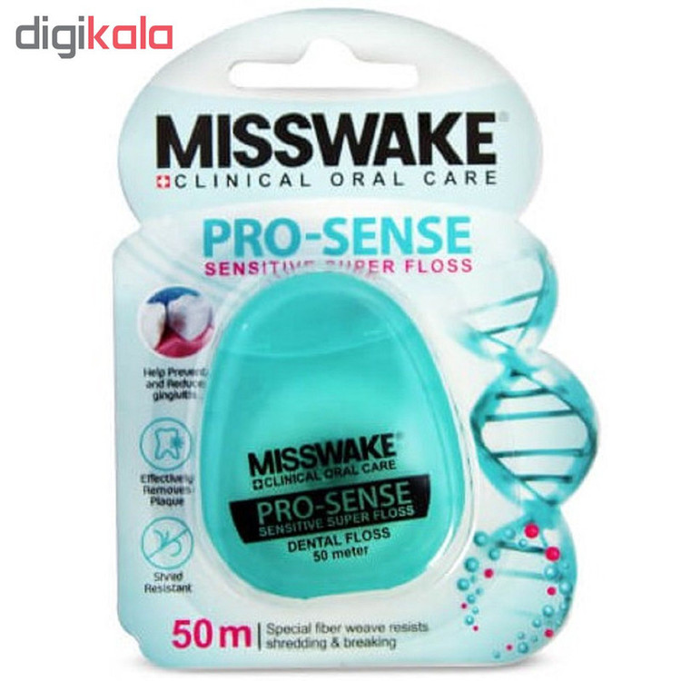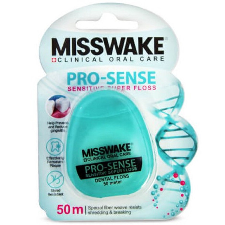 نخ دندان ضدحساسیت میسویک مدل Pro Sense یکی از نخ دندان های تولید شده توسط شرکت میسویک تولیدکننده محصولات بهداشت دهان و دندان تحت نظر میسویک سوِِییس است،این نخ دندان با ویژگی خاص استفاده از موم عسل طبیعی برای پوشش بهتر و استحکام بیشتر با استفاده از تکنولوژی انحصاری این شرکت تولید شده که این ویژگی باعث استفاده راحت تر و احساس خوشایند در هنگام استفاده می شود.این محصول در عین حال که باعث از بین بردن پلاک بین دندان ها می شود از ایجاد حساسیت برای لثه ها و مینای دندان جلوگیری کرده و با طعم نعنایی خود احساس تازگی را برای فرد استفاده کننده به ارمغان می آورد. با توجه بهطول 50 متری این نخ دندانتا مدت طولانی تری نسبت به مدلهای 25 و 30 متری جوابگوی شخص استفاده کننده خواهد بود که با توجه به کیفیت بالا و قیمت مناسب استفاده از آن را مقرون به صرفه می نماید و استفاده از آن به ویژه برای کسانی که دارای حساسیت دندانی هستند توصیه می شود.