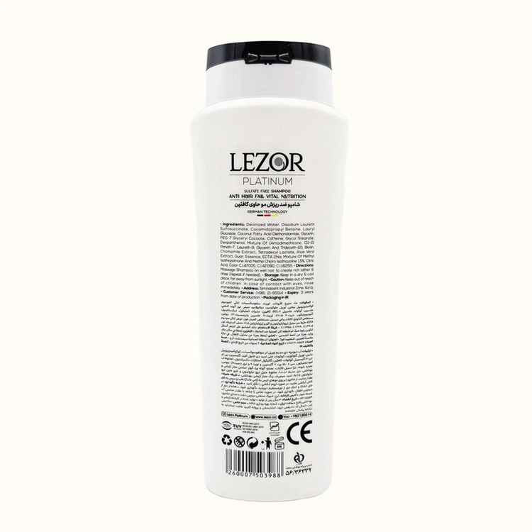 شامپو ضد ریزش کافئین لِزور، محصولی تخصصی با بهرهگیری از تکنولوژی آلمانی و فرمولاسیون بدون سولفات است که برای کاهش ریزش مو و تقویت ریشهها طراحی شده است. این شامپو برای افرادی مناسب است که با ضعف فولیکولها، نازک شدن تار مو و کاهش تراکم مو مواجه هستند. کافئین فعال موجود در این شامپو بهعنوان یک محرک مؤثر رشد مو عمل میکند و با افزایش گردش خون در پوست سر، به تقویت فولیکولها و بهبود تغذیه ریشه مو کمک مینماید. استفاده مداوم از این محصول باعث کاهش محسوس ریزش مو شده و استحکام تارهای مو را افزایش میدهد. در ترکیبات شامپو ضد ریزش لِزور از بیوتین، پروویتامین B5، عصاره بابونه، عصاره بلیس، روغن کرچک هیدروژنه و پروتئین گندم هیدرولیز شده استفاده شده است. این ترکیبات به تغذیه عمقی ریشه و ساقه مو کمک کرده و نقش مؤثری در ترمیم موهای آسیبدیده دارند. فرمولاسیون این شامپو با کاهش التهاب پوست سر، از خشکی و شوره جلوگیری میکند و باعث افزایش انعطافپذیری، ضخامت و حجم تارهای مو میشود. در نتیجه، موها ظاهری سالمتر و پرپشتتر پیدا میکنند. شامپو ضد ریزش کافئین لِزور برای انواع مو، از جمله موهای خشک، معمولی، چرب، رنگشده و ضعیفشده، مناسب است. این محصول فاقد پارابن، SLS و مواد مضر بوده و به همین دلیل برای پوست سر حساس نیز قابل استفاده میباشد. استفاده منظم از این شامپو علاوه بر کنترل ریزش مو، به افزایش قطر تار مو و جلوگیری از شکنندگی کمک میکند.