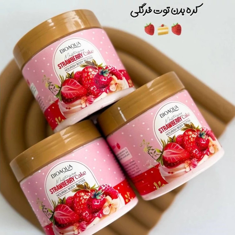 کره بدن بیوآکوا رایحه کیک توت فرنگی ۲۰۰ گرمی