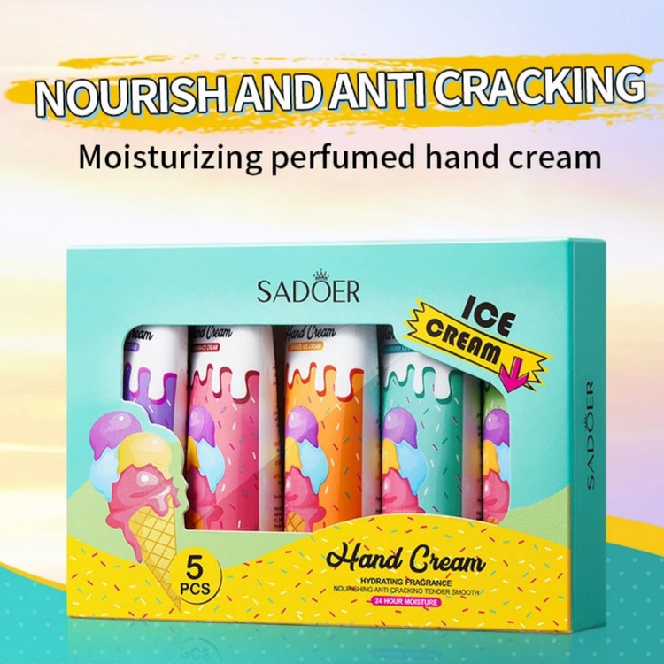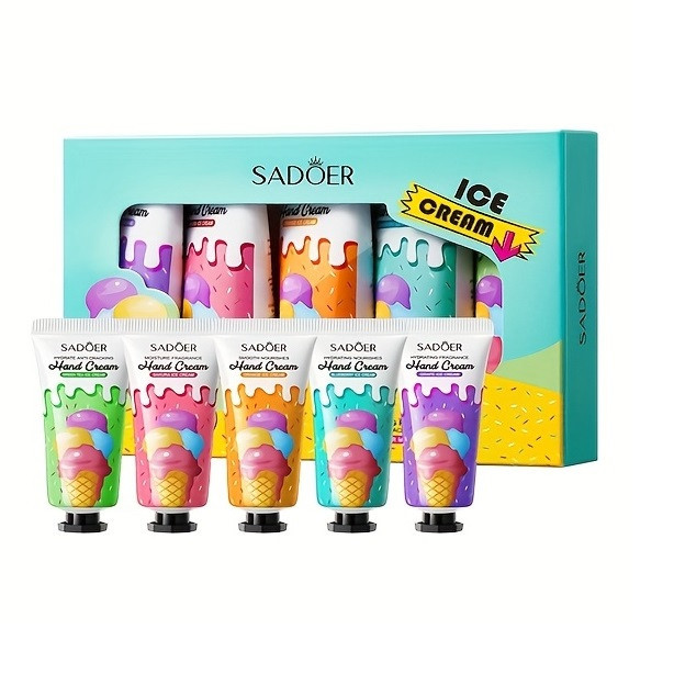 کرم دست طرح بستنی قیفی سادور ، مرطوب کننده قوی پوست با رایحه عالی می باشد. این مجموعه شامل 5 گرم با وزن 20 گرم و با رایحه های پرتقال، بلوبری، ساکورا، چای سبز، انگور است که مرطوب کننده قوی پوست و شاداب کننده پوست است و علاوه بر بافت سبک، مغذی پوست بوده و حاوی ویتامین و پروتئین ها بوده جذب سریعی دارد و از ترک های پوستی جلوگیری کرده و موجب رفع خشکی پوست می شود. با این مجموعه، هدیه زیبایی را به عزیزانتان تقدیم کنید.