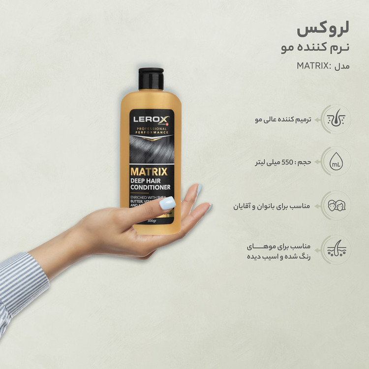 نرم کننده موی لروکس ترمیم کننده عالی مو با فرمولاسیونی بی نظیر که موهای اسیب دیده شما را ترمیم و بازسازی نموده و ظاهری سالم و شاداب به انها می بخشد و مناسب برای موهای رنگ شده و اسیب دیده از ان است