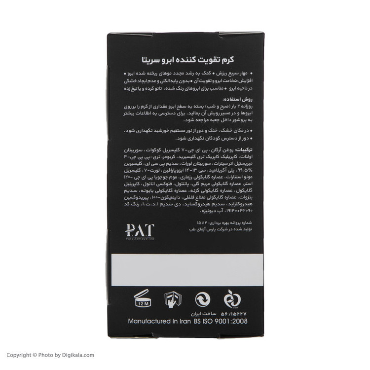کرم تقویت کننده ابرو سریتا محصولی گیاهی است که با بهره مندی از مواد موثره گیاهانی عصاره رزماری، عصاره گزنه، عصاره نعناع فلفلی، عصاره بابونه،عصاره مریم گلی به همراه ویتامین های B5 و B6 از ریزش ابرو جلوگیری نموده و باعث تقویت و ضخیم تر شدن موهای ابرو و همچنین تحریک رویش مجدد آنها می شوند. از ویژگی های این تقویت کننده مو، مژه و ابرو سریتا فرم کرمی شکل آن است که به راحتی می توان آن را بر روی ابروها ماساژ داد و مدت زمان بیشتری بر روی ابروها بماند. زمانی که پوست تمیز و منافذ آن از ناخالصی ها مسدود نباشد، ترکیبات محصولات به خوبی به لایه های پوست نفوذ کرده و بسیار موثر عمل می کنند. کرم ضد ریزش سریتا نیز حاوی اسیدهای گیاهی است که باعث پاکسازی محیط اطراف موهای ابرو شده و به همین سبب مواد موثره این محصول به راحتی و سریع تر به پوست نفوذ می نماید.خواص آنتی اکسیدانی موجود در این کرم، اثرات جانبی ناشی از ترکیبات مضر را به حداقل می رساند و بدین ترتیب علاوه بر حذف اثر عوامل مضر، اثربخشی سایر ترکیبات موجود در فرمولاسیون را نیز افزایش می دهد. همچنین کرم گیاهی تقویت کننده و ضد ریزش ابرو سریتا باعث تقویت فولیکول های مو ابرو شده و مناسب ترین شرایط را برای رشد موهای جدید در ناحیه ابرو فراهم می سازد. تاتو شده و تیغ زده و ابروهای برداشته شده بهره گیری از مواد اولیه آزمون شده توسط متخصصین پوست و مو فرم کرمی شکل برای ماساژ راحت و افزایش تحریک رویش ابروعمل برداشتن ابرو و یا بعضا تیغ زدن آن برای دراز مدت به علت آسیب هایی که به صورت فیزیکی به پوست در این ناحیه وارد می کند باعث التهاب موضعی شده که متعاقب آن سبب آسیب دیدگی پوست و ابرو می شود، پیر شدن، چروک شدن و یا تیره شدن سریعتر پوست در ناحیه ابرو را بدنبال دارد، کرم گیاهی تقویت کننده و ضد ریزش ابرو سریتا با خاصیت ضد التهابی و ضد پیری خود که ناشی از ترکیبات آنتی اکسیدان و تغذیه کننده پوست است این عوارض را به تعویق می اندازد.