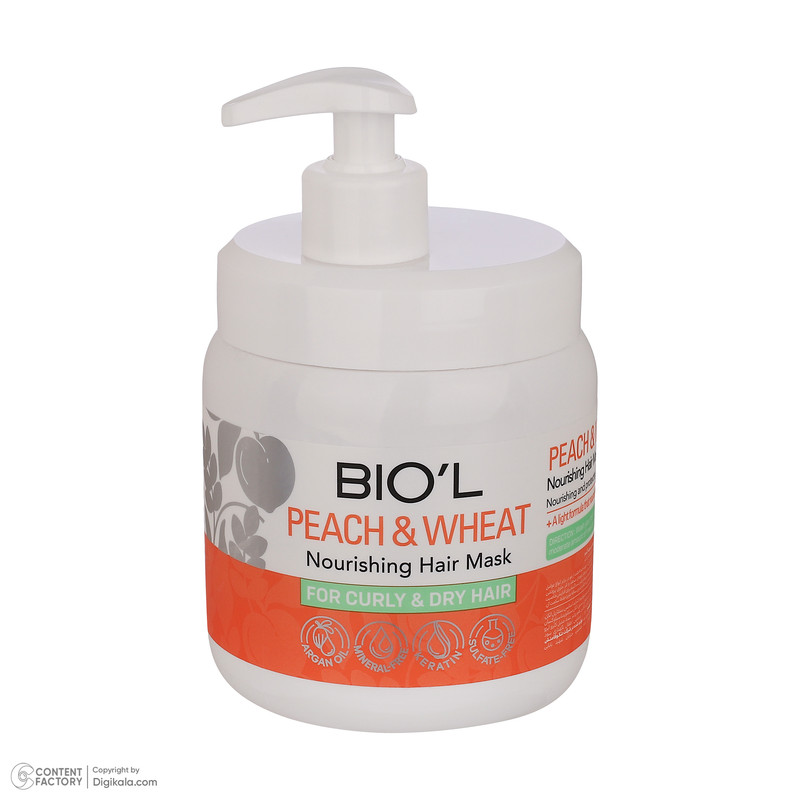 ماسک تقویت کننده مو بیول مدل Peach And Wheat مناسب برای موهای فر و خشک حجم 500 میلی لیتر