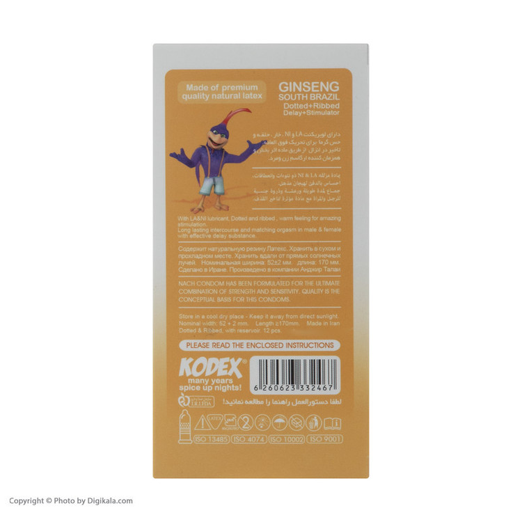 کاندوم تاخیری جینسینگ کدکس مدل Ginseng بسته 12 عددی