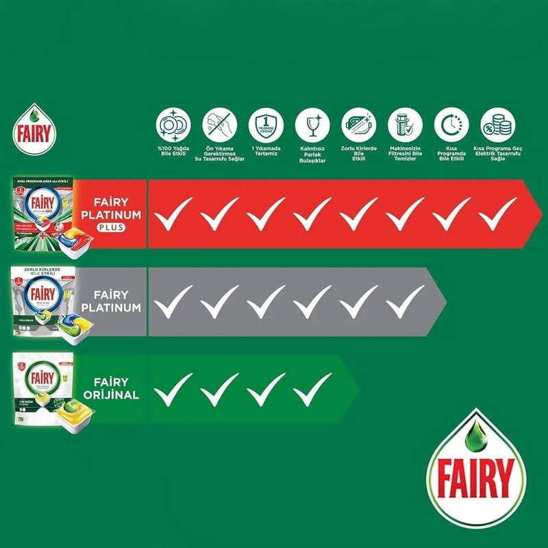 قرص ماشین ظرفشویی پلاتینوم فیری، شوینده ای فوق العاده قوی و بی نظیر است که تحت هر شرایطی بهترین نتیجه را در شستشو فراهم خواهد کرد. قرص ظرفشویی پلاتیونوم فیری، یک ویژگی منحصر به فرد دارد و آن هم جرمگیری فیلتر دستگاه در هر بار شستشو می باشد. پس از شستشو ظروف با قرص ماشین ظرفشویی پلاتینوم، ظروفی تمیز و درخشان به همراه یک ماشین ظرفشویی تمیز و خوشبو خواهید داشت. این قرص حاوی جلادهنده ظروف به میزانی بیشتر از قرص های همه کاره فیری میباشد که نیاز به استفاده از جلادهنده بطور جداگانه را برطرف میکند.
